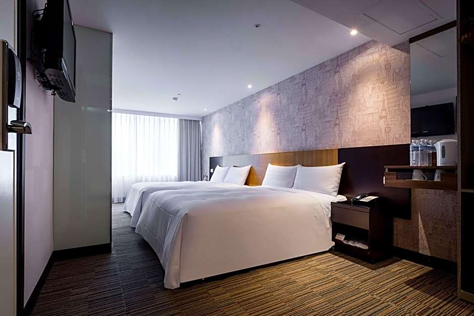 This suite has 2 double beds, 2 flat-screen TVs and private bathroom with bath and shower facilities. Bottled water is provided daily.